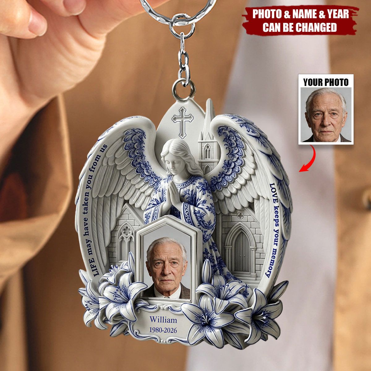 Angel Memorial Keychain - Custom Photo Gifts For Heaven