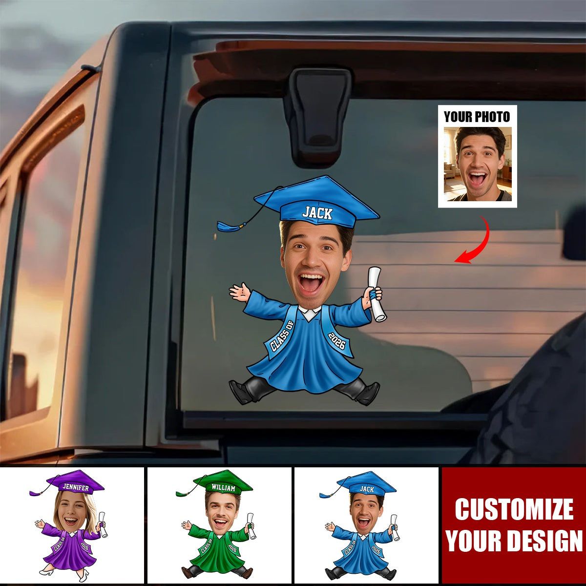 Custom Funny Face Class of 2026 Graduation Car Window Decal Sticker