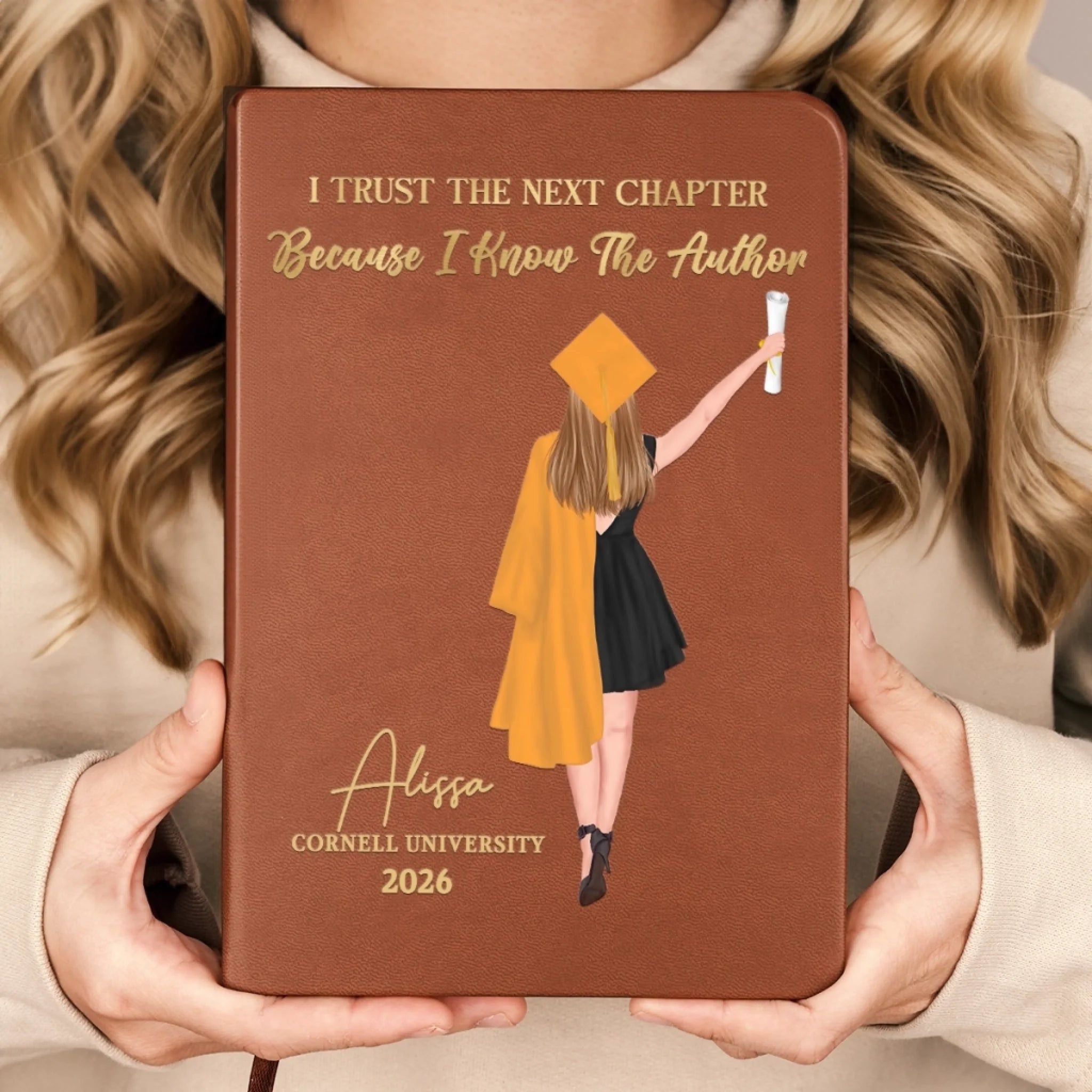 I Trust The Next Chapter - Family Personalized Custom Leather Journal - Graduation Gift For Family Members, Siblings, Brothers, Sisters