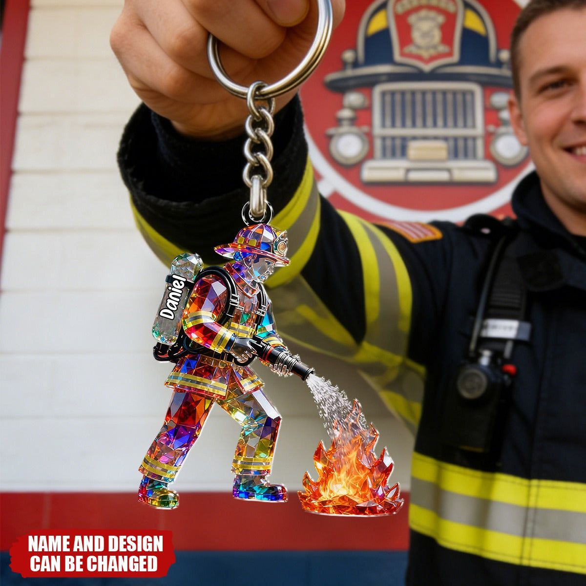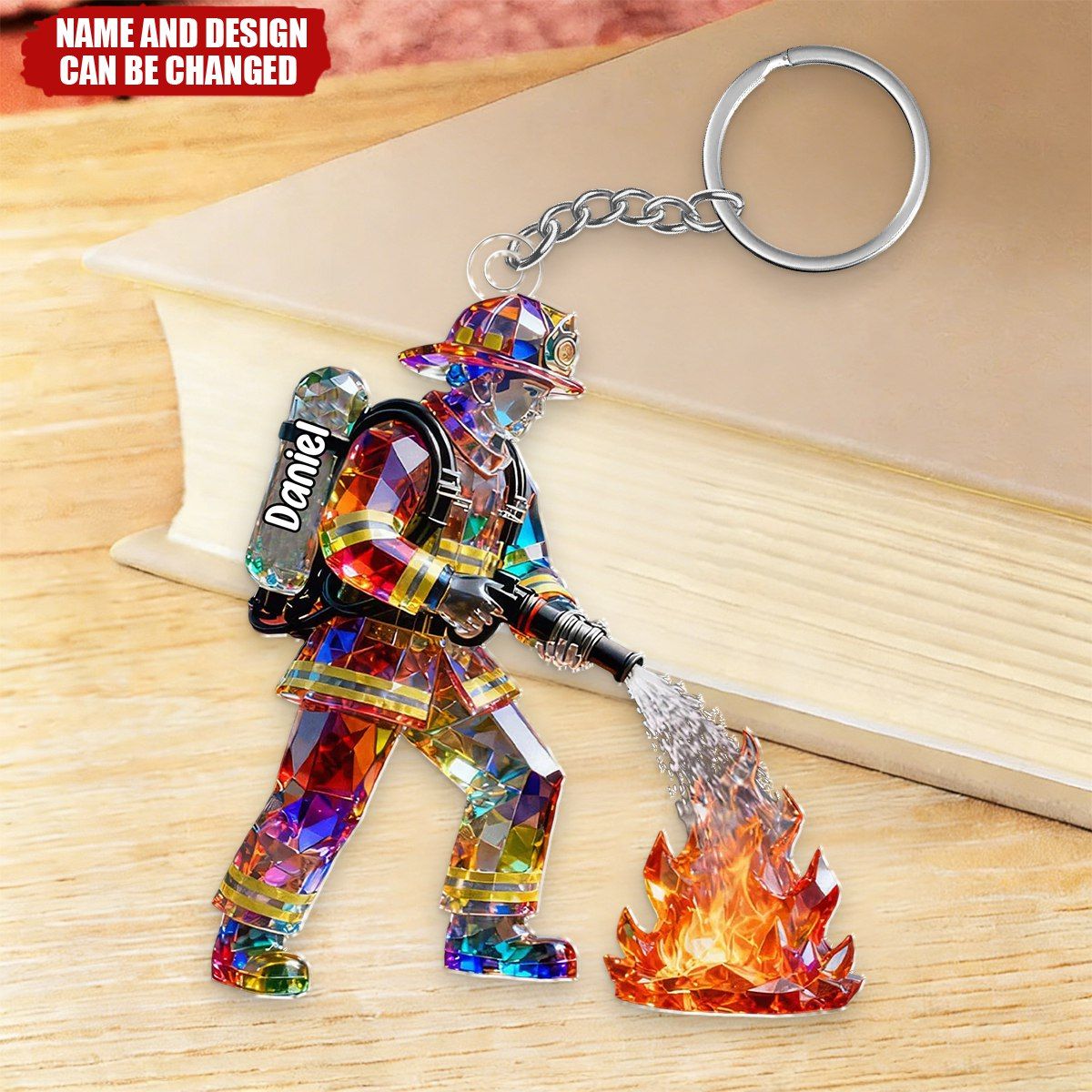 A luminous token of unwavering bravery. This unique keychain, with its stunning stained-glass crystal effect, is a meaningful and artistic gift for any firefighter or their family. Personalized with a name, it honors the individual behind the uniform in a truly special way.