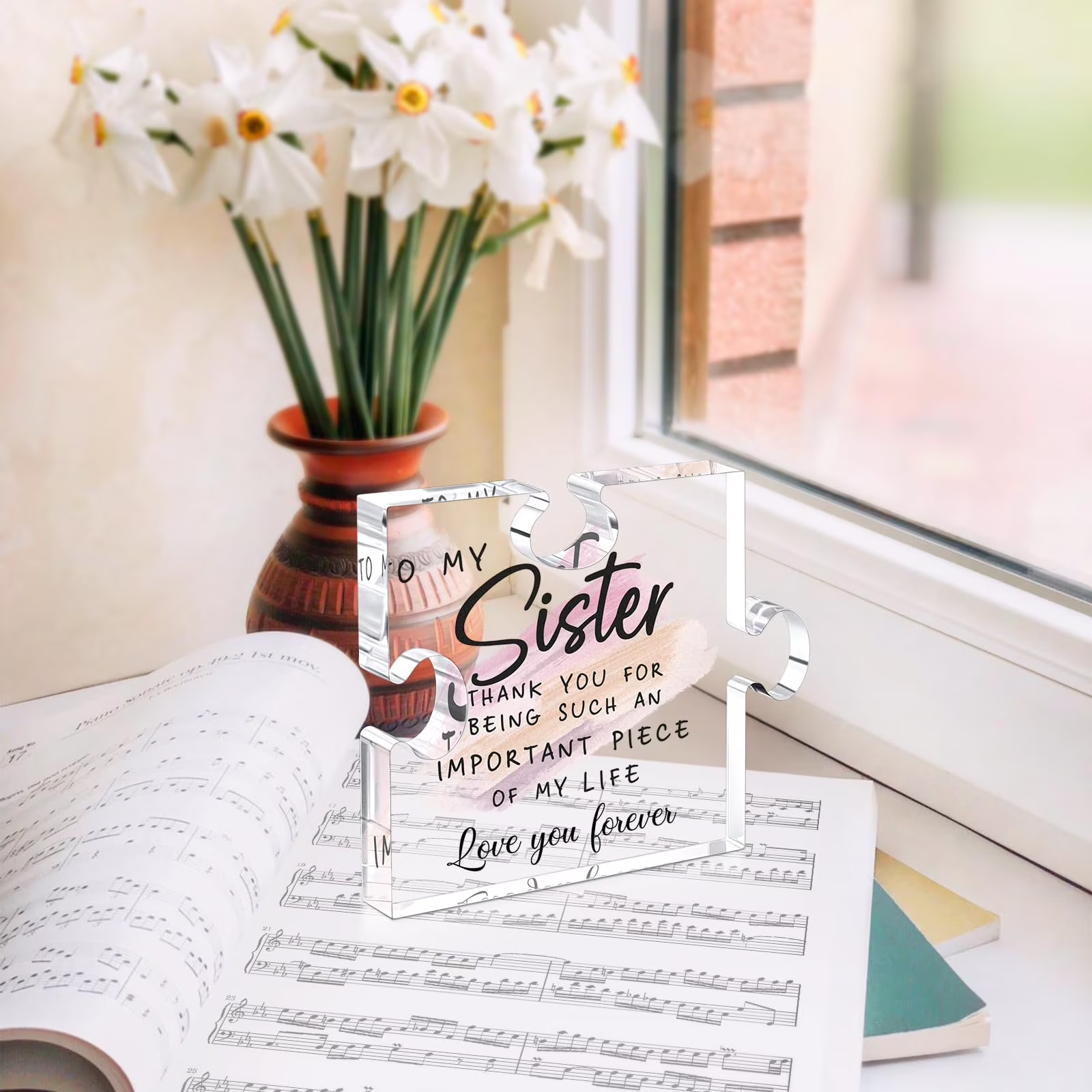 Sister Gifts from Sister, Unique Gifts for Sister Birthday Christmas Wedding, Acrylic Puzzle-Shaped Plaque Desk Decorations Present for Sister from Sister Brother