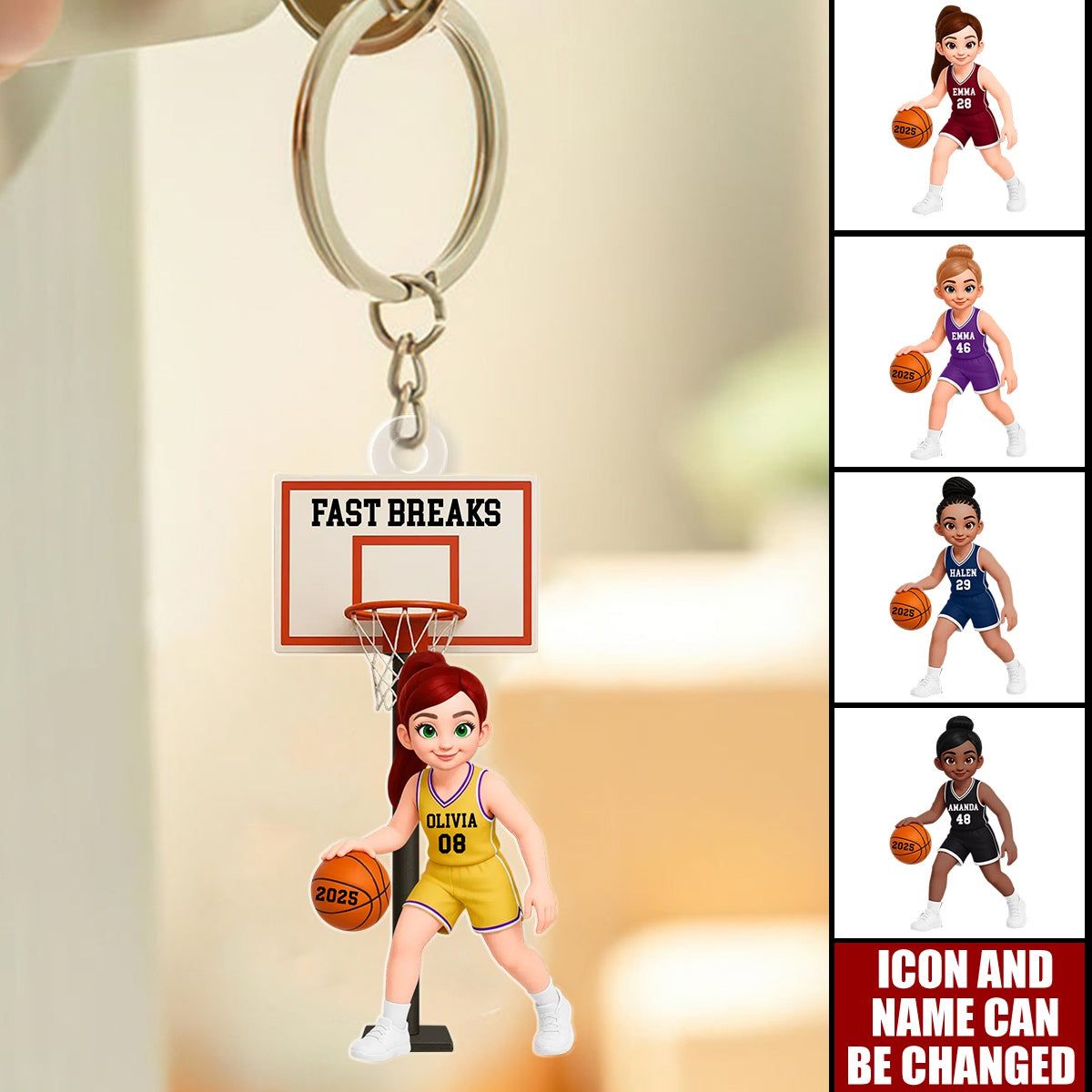 Basketball Girl Playing On Court - Personalized Acrylic Keychain - Gift For Girls