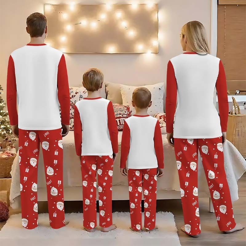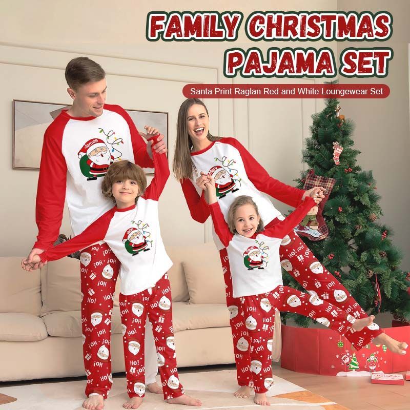 Family Christmas Pajama Set – Santa Claus Print Crew Neck Raglan Sleeve Red and White Loungewear Set