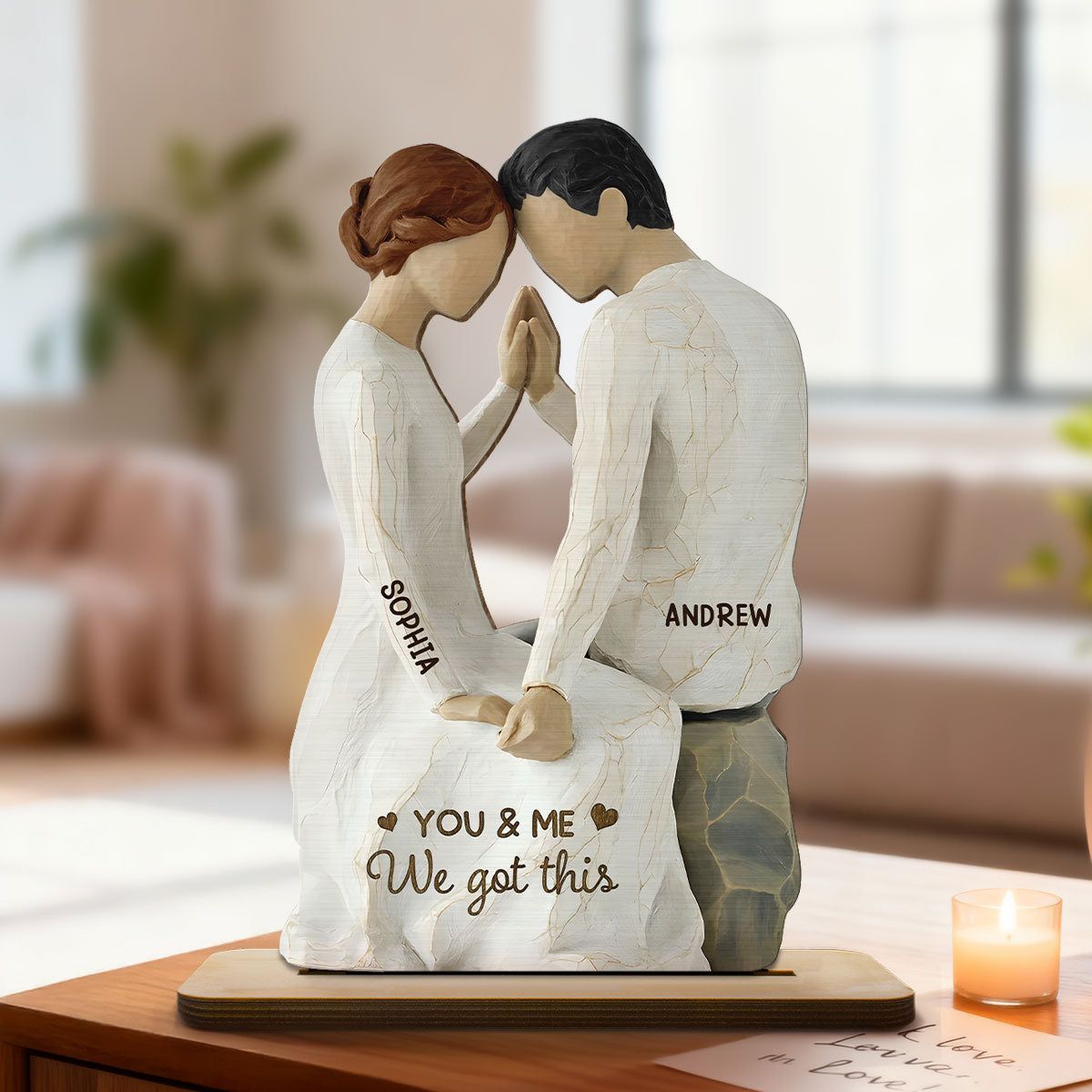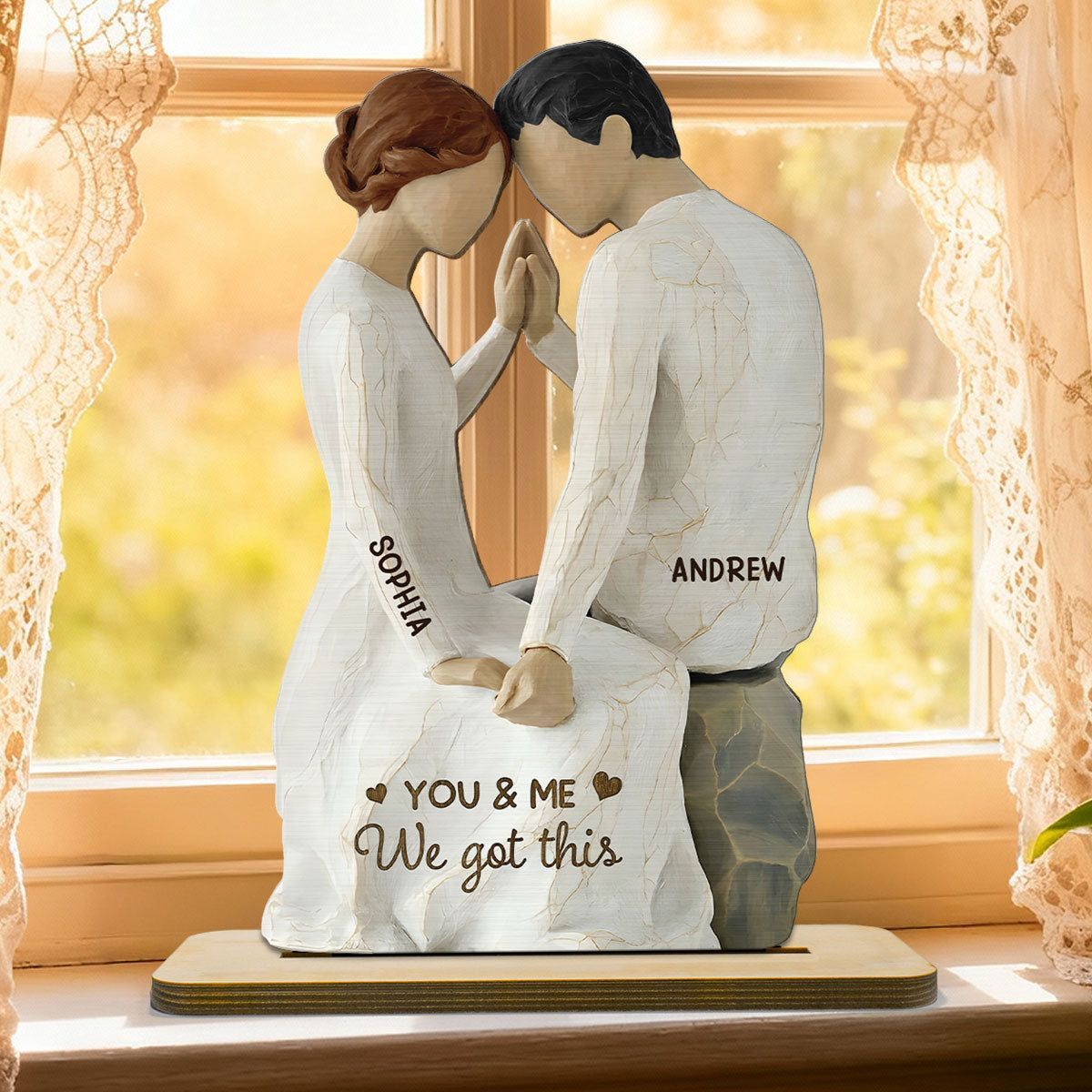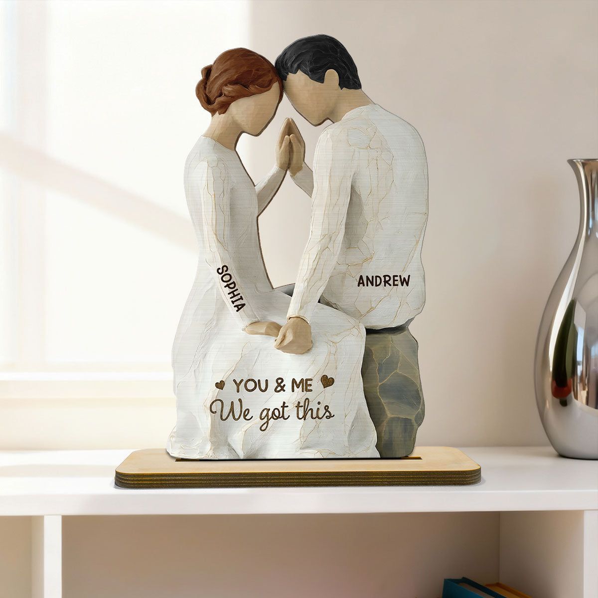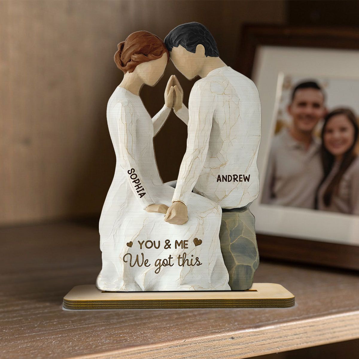 3D Effect Couple Sitting Side By Side - Personalized 2-Layered Wooden Plaque - Valentine's Day, Anniversary Gift For Him, Gift For Her