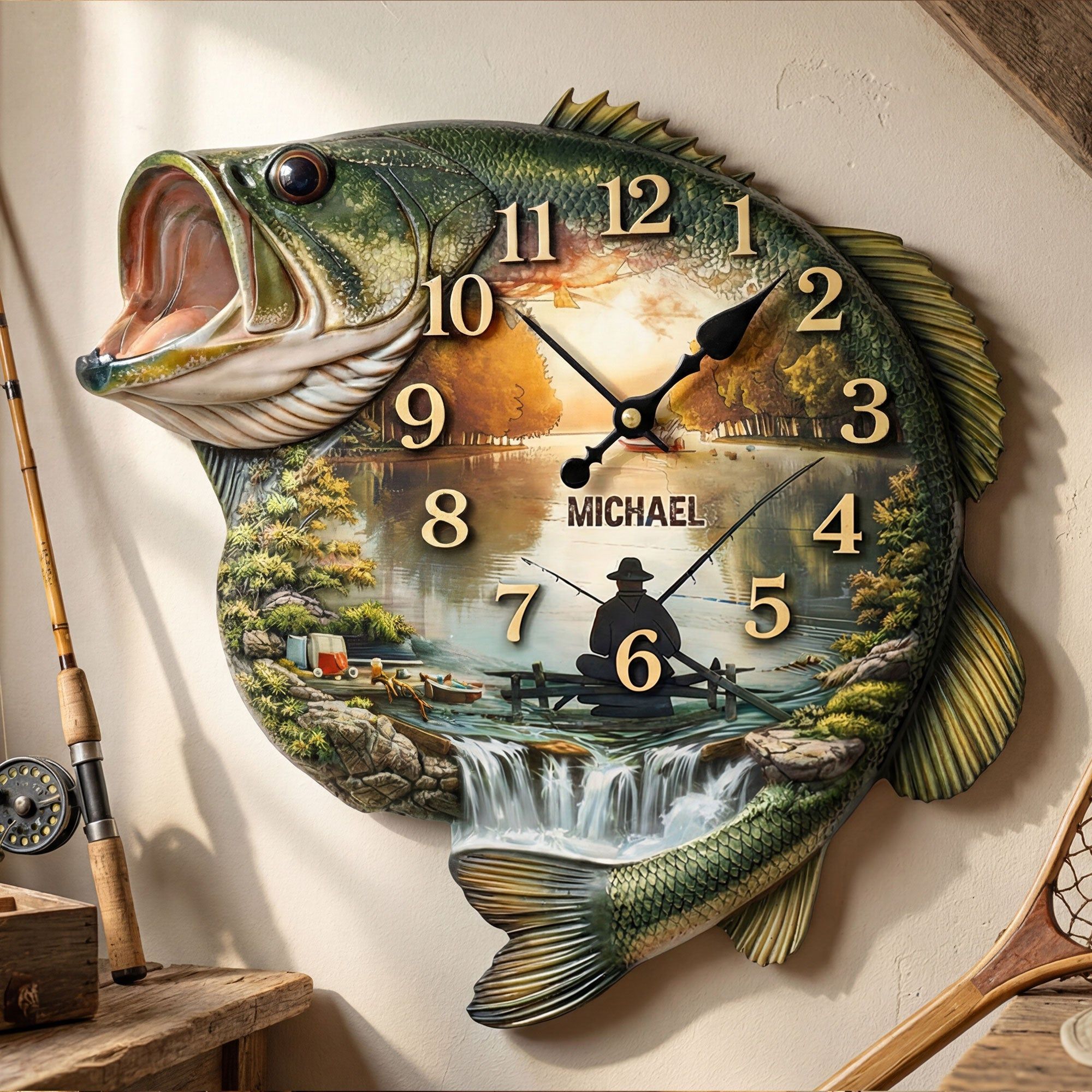 Fishing Lake Scene Acrylic Clock – Personalized Gifts For Fishing Lovers