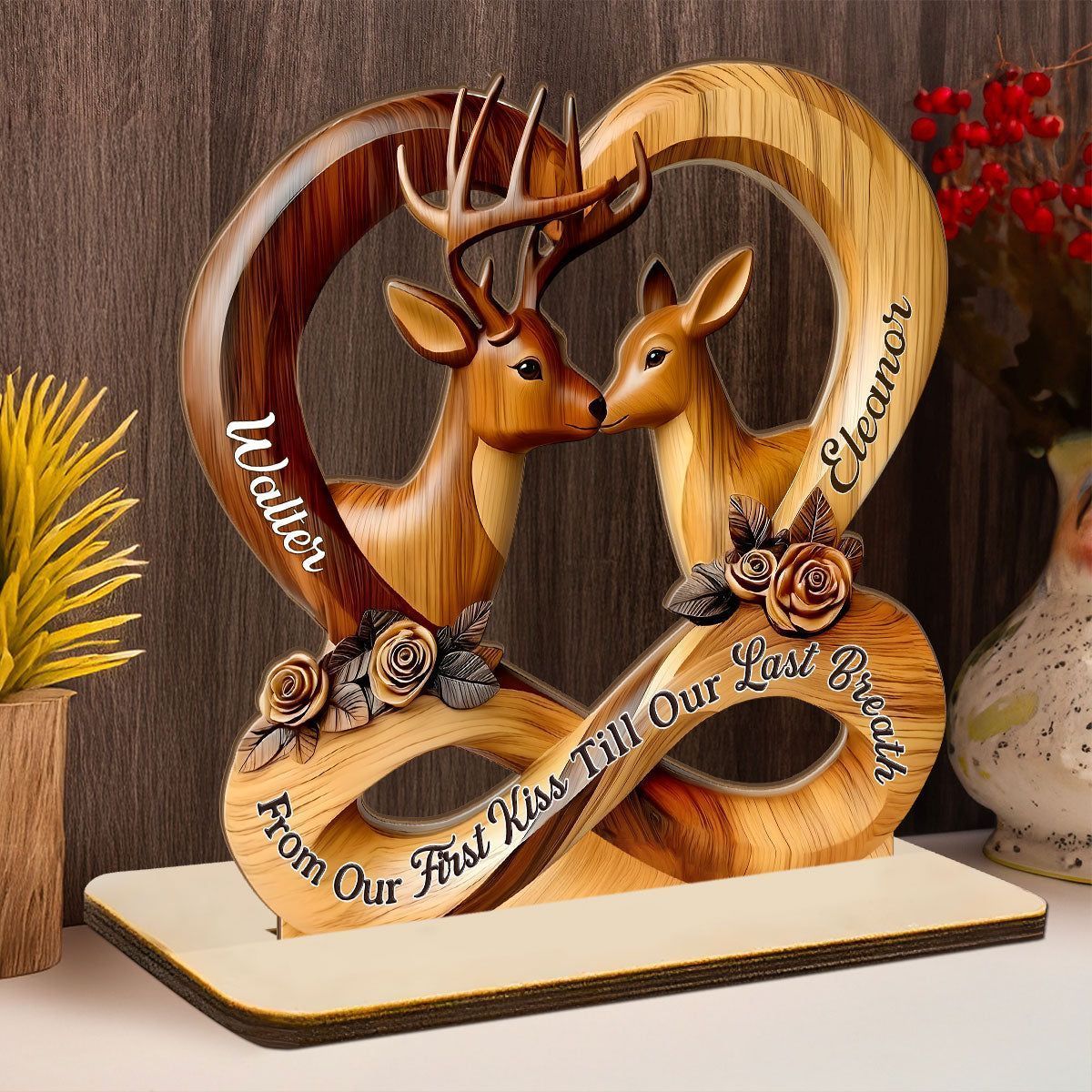 Forever Carved In Love - Personalized 2-Layer Wood Plaque With Flat Base