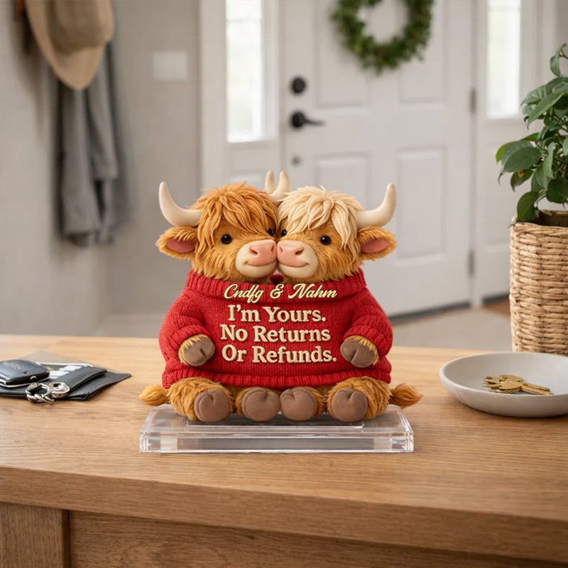 I Belong to You – Personalized Highland Cow Couple Acrylic Plaque