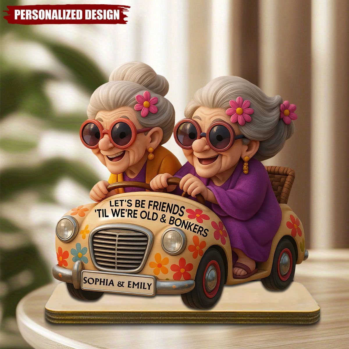 Let's Be Friends 'Til We're Old & Bonkers-Personalized Besties Christmas Plaque