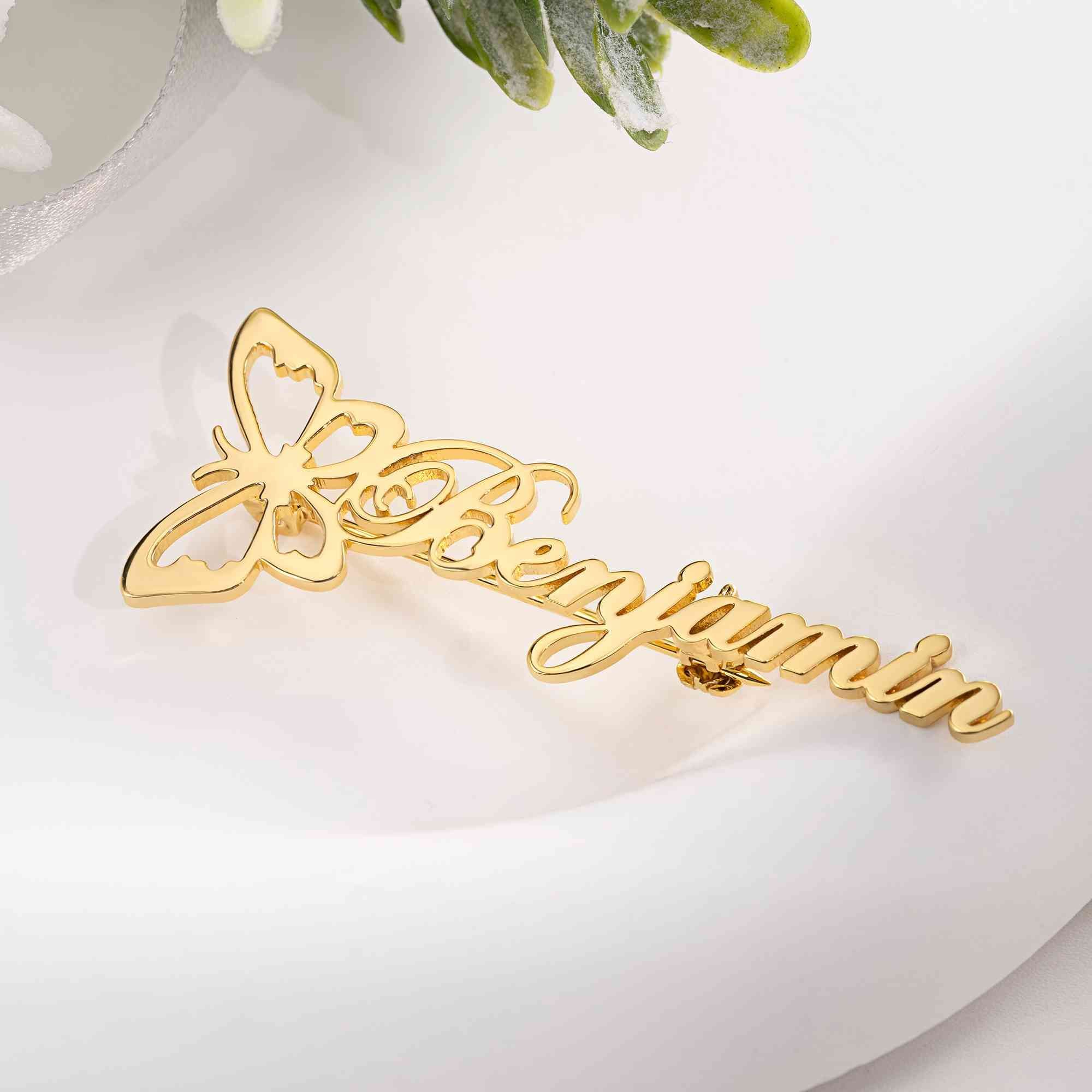Personalized Butterfly Lapel Pin with Name Custom Unisex Brooch Pin for Suit Dress, Wedding Accessory, Gift for Brides Grooms Best Men Maids of Honor