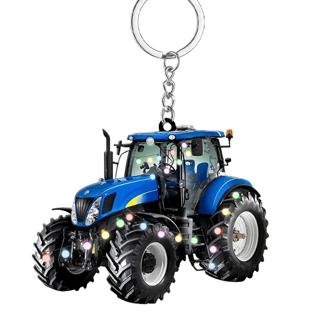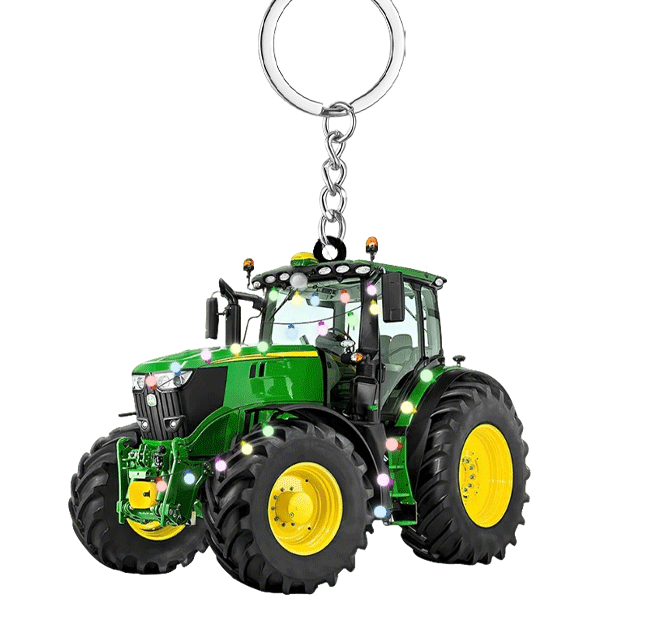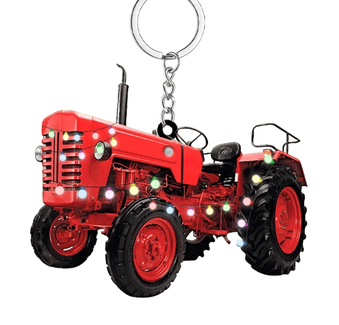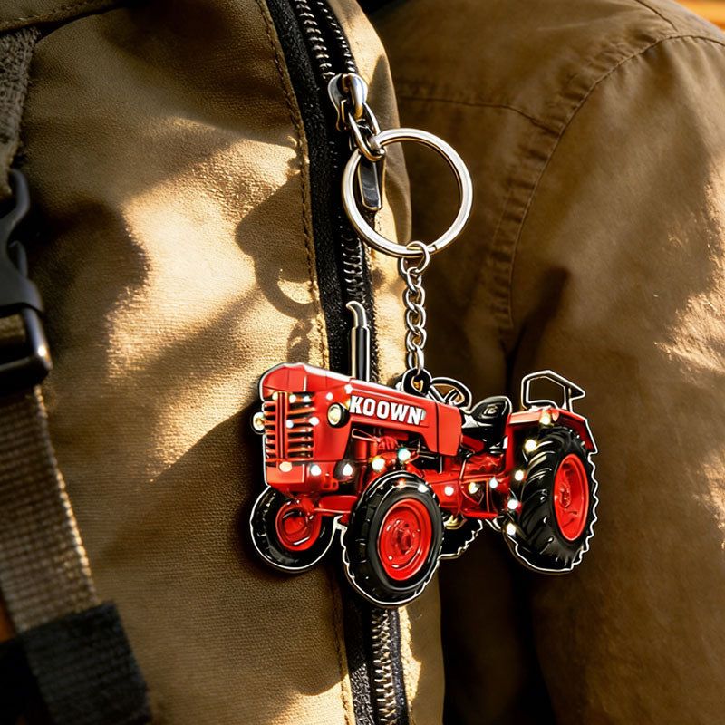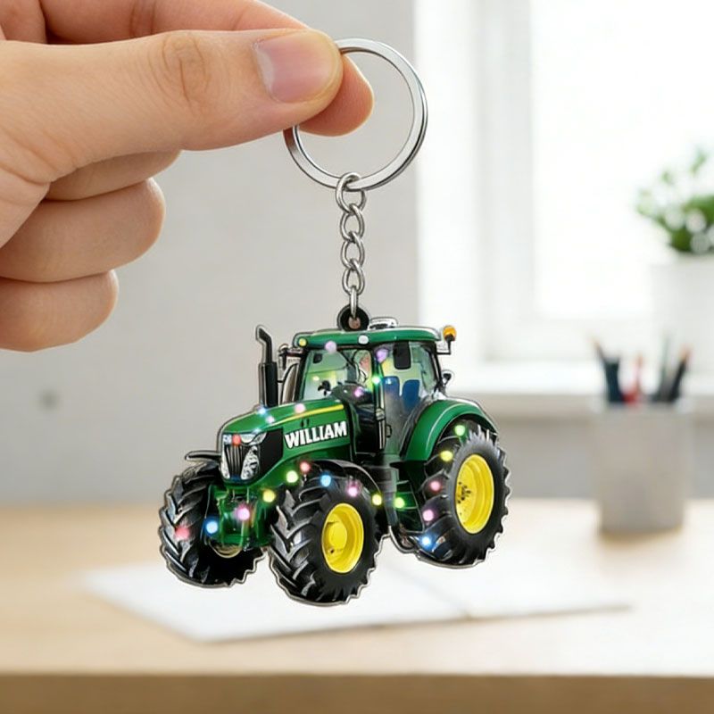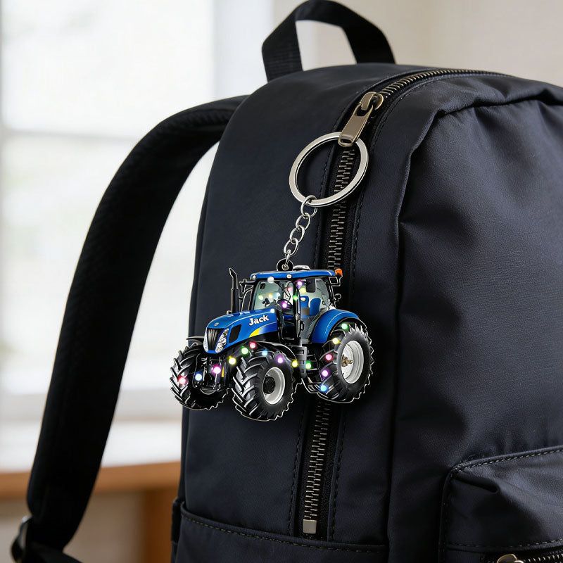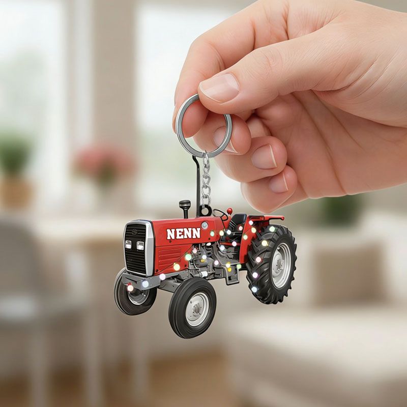 Personalized Christmas Tractor Keychain – Custom Holiday Gift for Farmers and Tractor Fans
