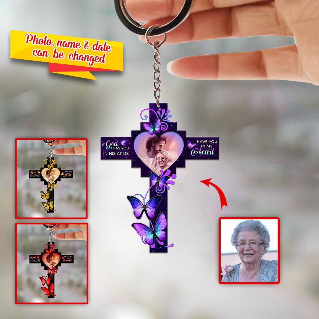 Personalized God has you in his arms Memorial Gift Butterfly Cross Keychain