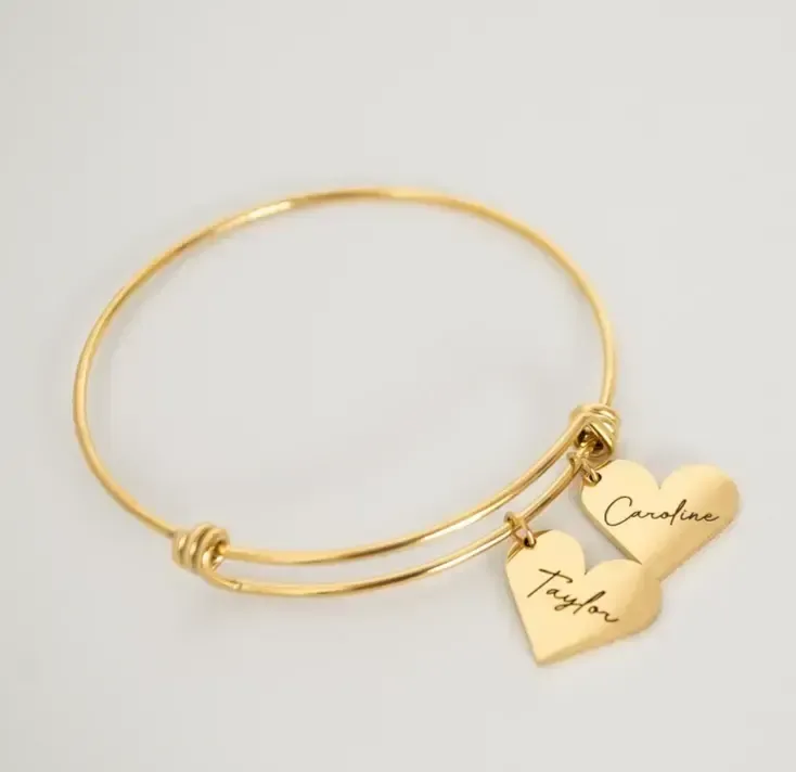 Personalized heart-shaped pendant bracelet, a gift for mom.
