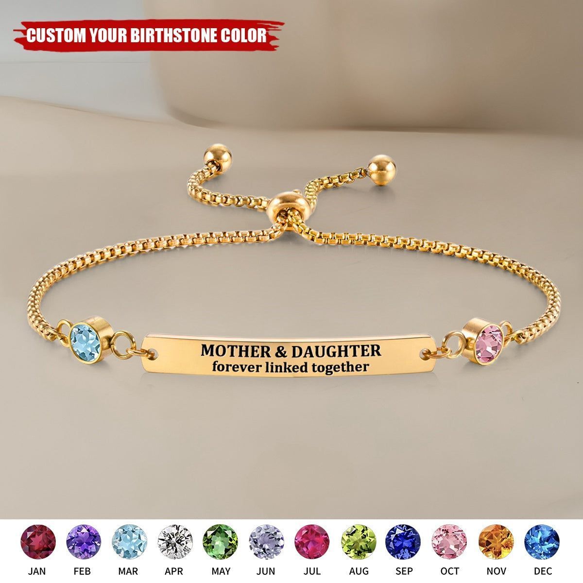 Personalized Mother & Daughter Forever Linked Together Custom Birthstones Bracelet