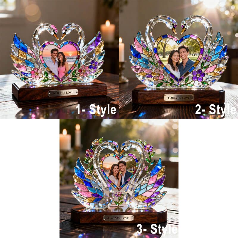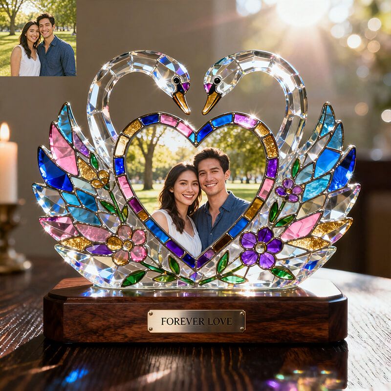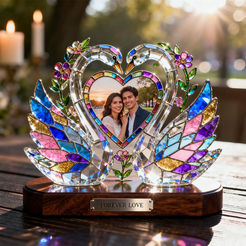 Personalized stained glass swan heart themed photo ornament