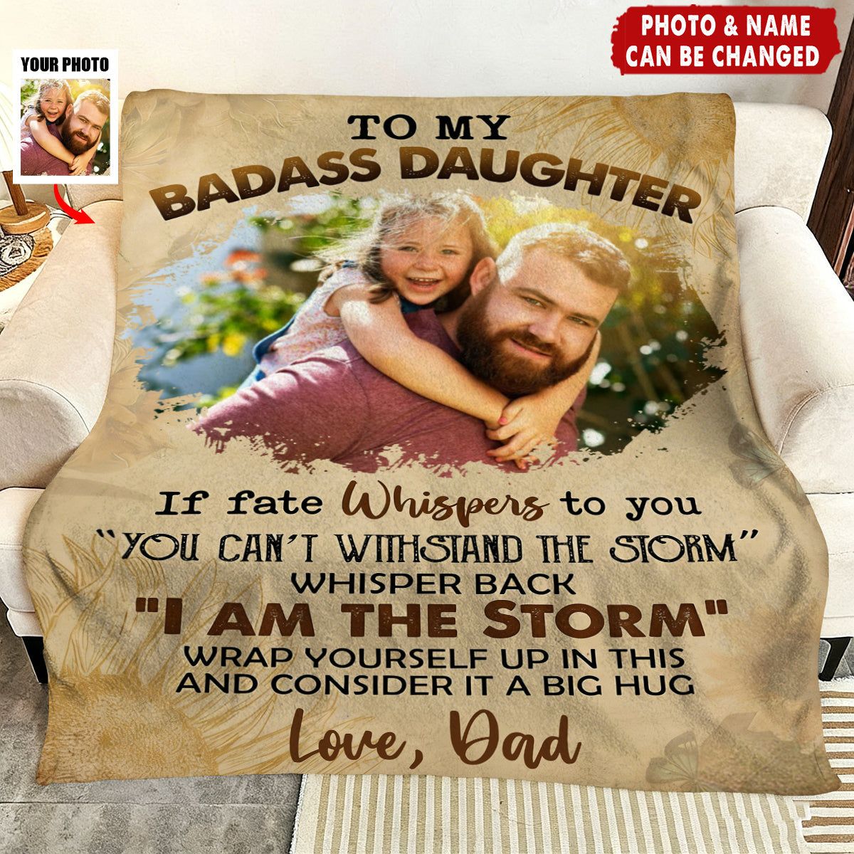 To My Badass Daughter Personalized Photo Blanket – Custom Name & Photo Gift From Mom & Dad