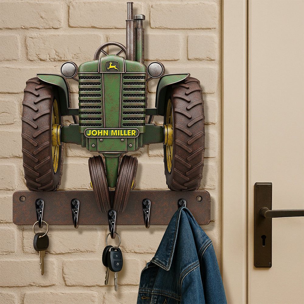 Personalized Tractor Key Holder Wall Decor – Custom Farmer Gift