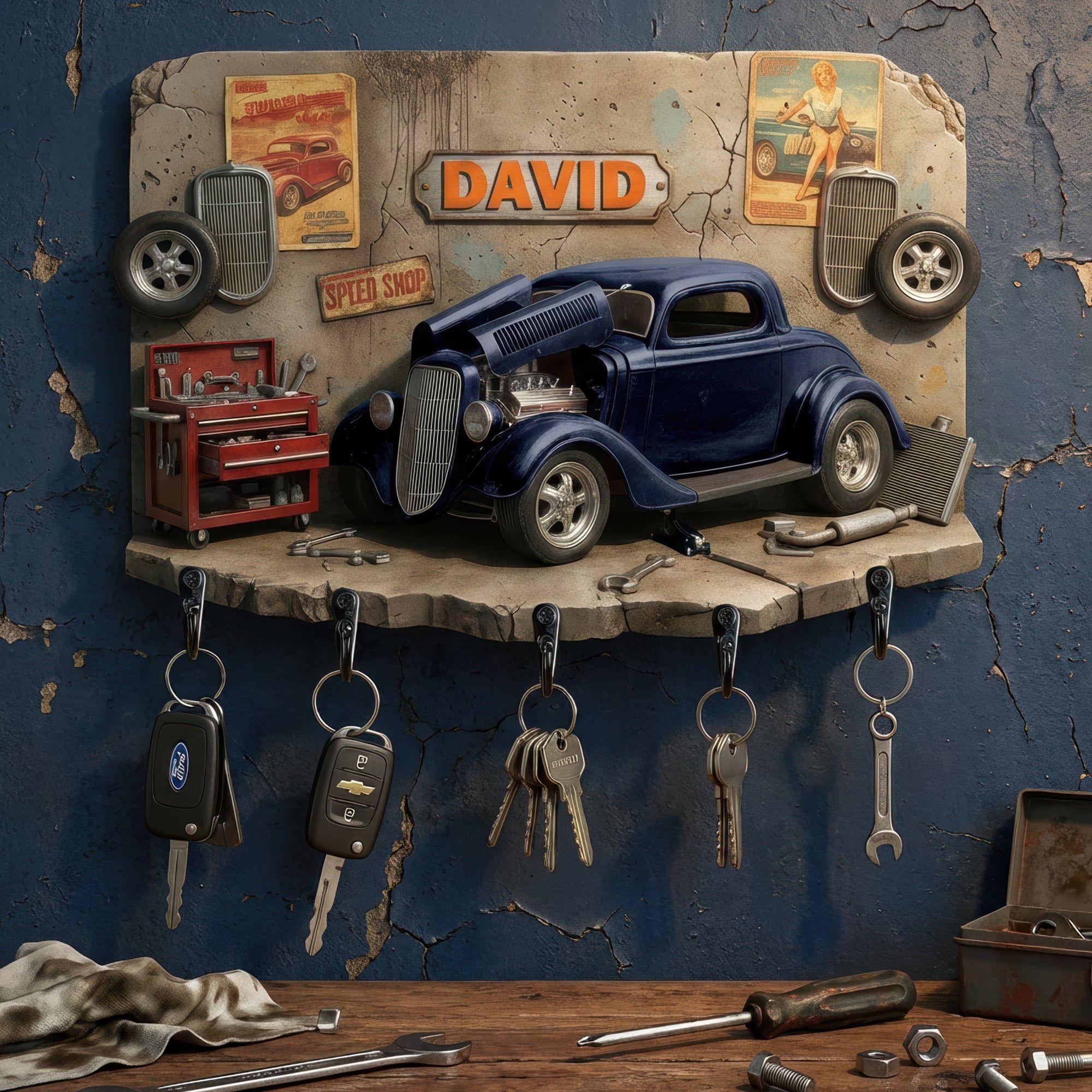 Vintage Car Garage Key Hanger - Personalized Gifts For Car Lovers